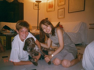 コンクール期間中お世話になったホームステイ先の息子さんと愛犬と一緒に